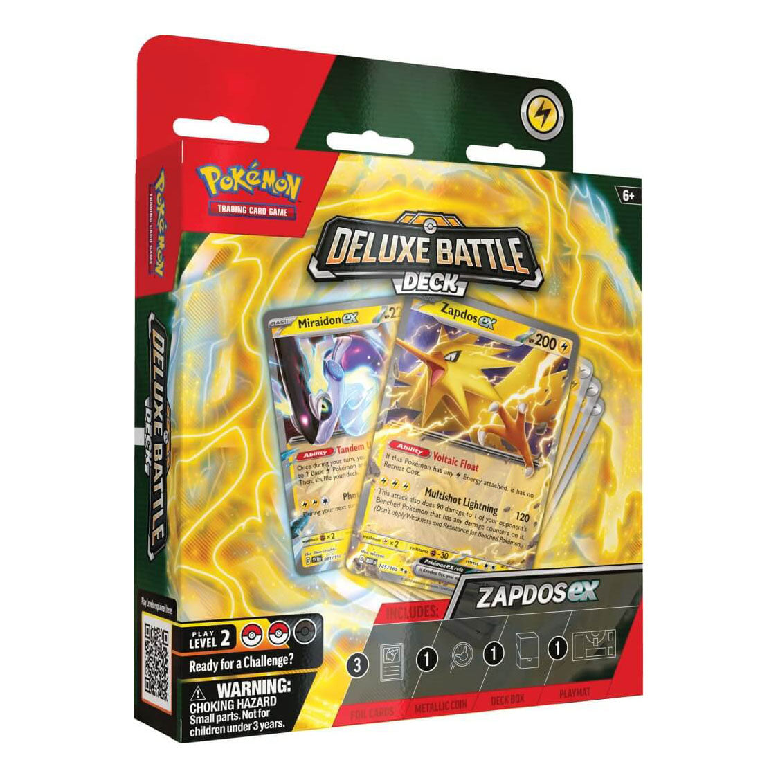 The new Pokémon TCG: Deluxe Battle Decks offer a step up for players who are ready for a challenge, with more advanced strategies and additional power cards. Each 60-card deck includes 3 foil cards and everything you need to play right away. Let the deluxe battle begin!