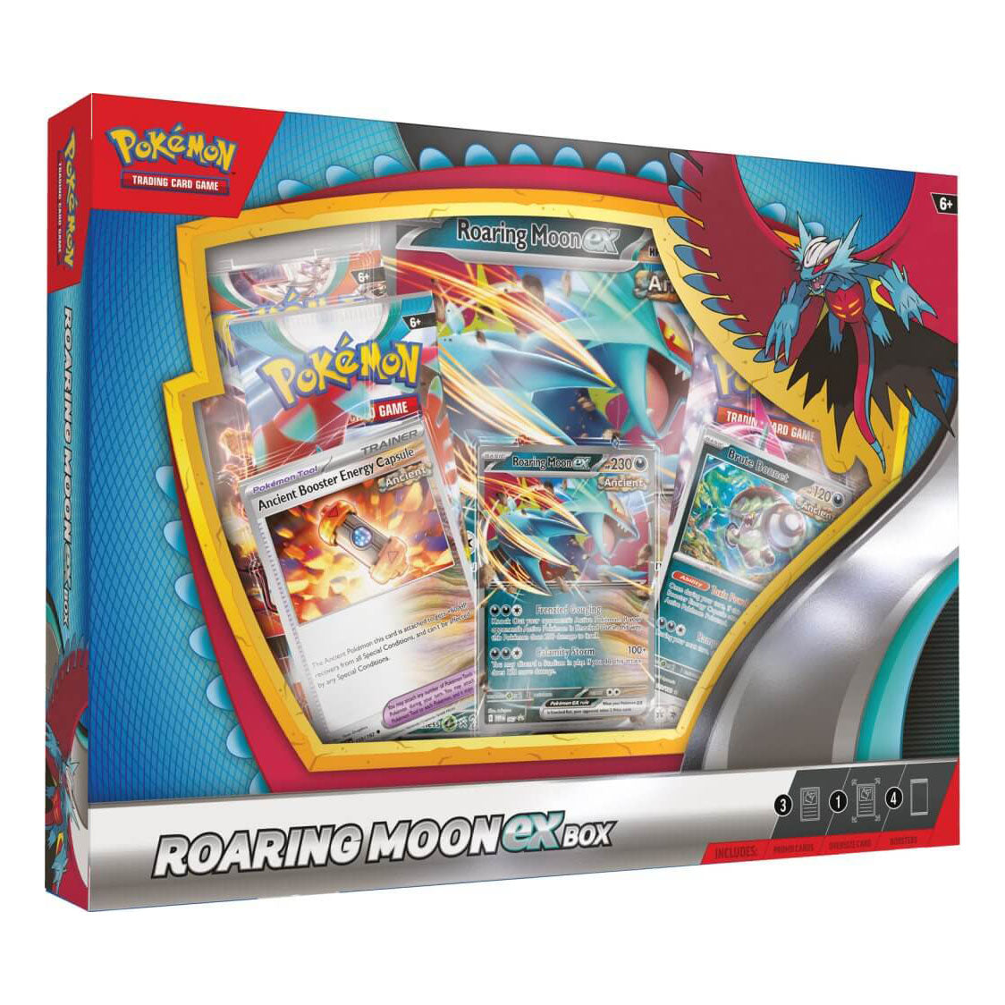 Each Pokémon TCG: Roaring Moon ex Box or Iron Valiant ex Box includes: